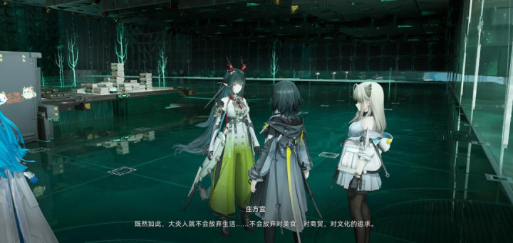 玩家在与角色庄方宜初步接触之后,可以向其询问道「为什么要在侵蚀如此活跃的区域建立城市」。庄方宜则会解释道「因为这是我们的生活方式。……既然如此,大炎人就不会放弃生活,不会放弃对美食,对商贸,对文化的追求。哪怕是在侵蚀潮的正中心。」这也正面解释了为什么武陵城会呈现出如今繁华的生活场景。