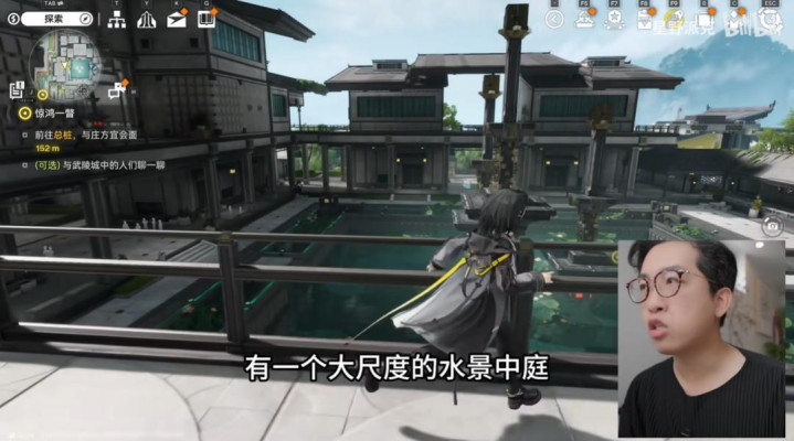 包括以选剑局为例,建筑布局采用了江南园林中内闭外开、水景中庭的结构形式。同时游戏也只在这一个与武学相关的建筑中设置了门口的石狮子,表达出天师们与石狮子一样具有辟邪镇宅的守护感。可以感觉到,武陵城对国风元素的运用相对克制,尽可能与建筑本身的调性相挂钩。